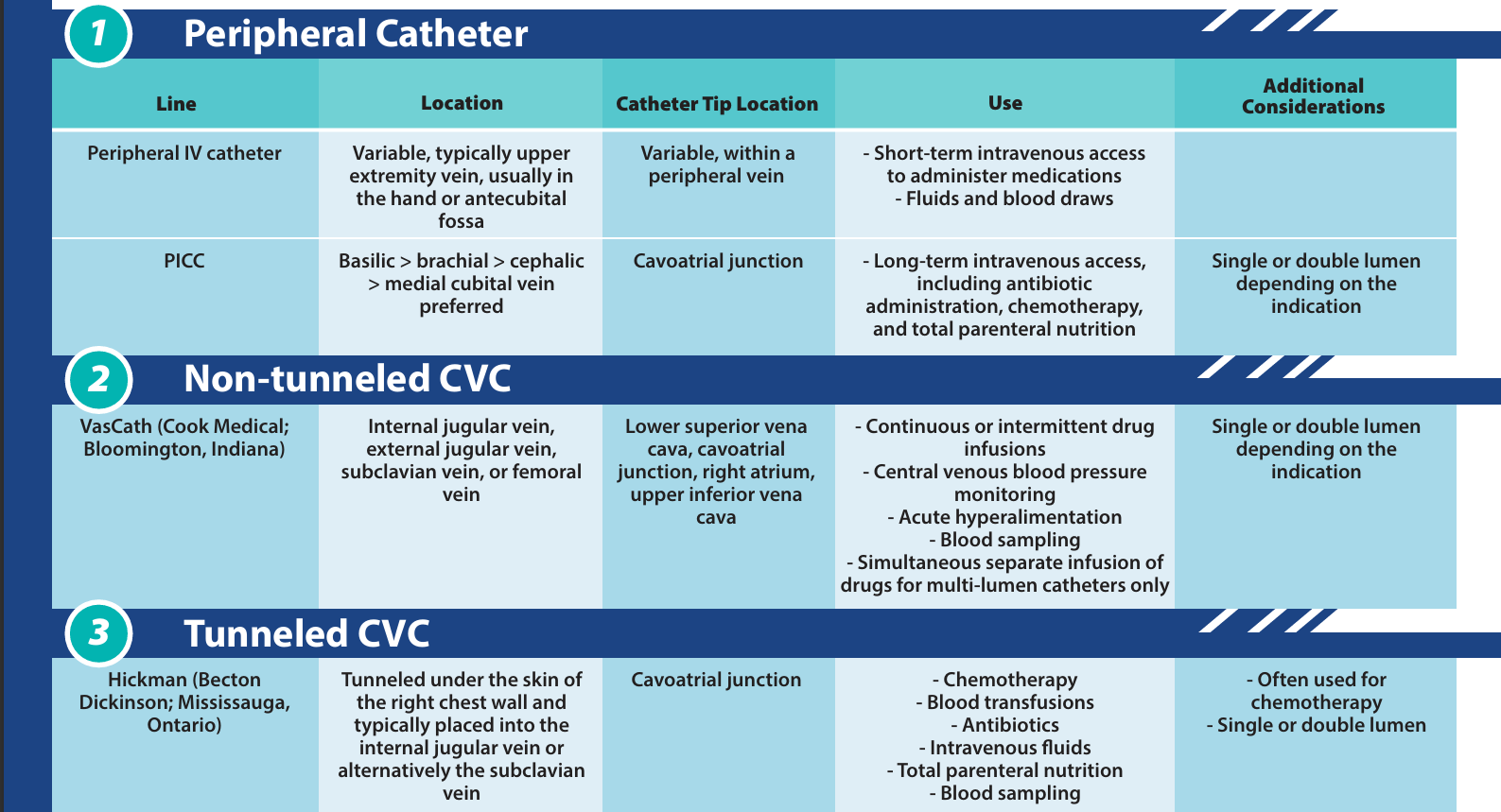 Establishing safe central venous access is one of the most common interventional radiology procedures. Knowledge of common peripheral and central venous access devices facilitates better understanding of how these devices are selected and positioned depending on their intended use.